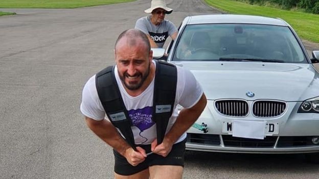 He said he was inspired to embark on the challenge after a friend had a double lung transplant. Max enlisted friends to steer the 1.7 ton BMW 5 series as he pulled it along the vehicle testing track in Lutterworth on August 3.