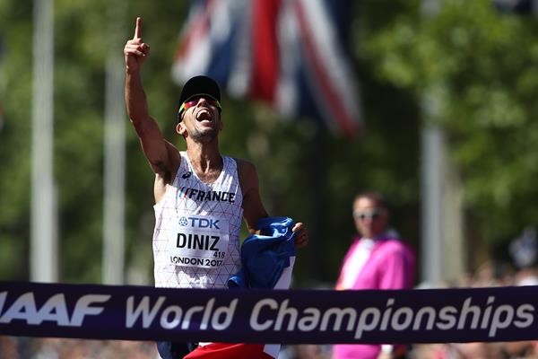 Diniz, the world record holder in the 50km race walk since 2014, captured his first world title in his specialty in London at 39, in his sixth world championships appearance over the distance.