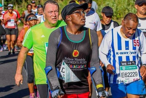 Known as ‘The Crutch Runner’‚ Khunou was born with a rare brain illness called septo-optic dysplasia which causes loss of balance and also affects eyesight. But he has not allowed this to hold him back.
