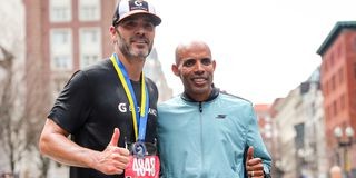 “I got a second chance. I feel very good this morning, too. Running with 15 friends (most ever) including my son, Luke and finishing my 47th Boston with little Jack Middlemiss, my heart warrior teammate made it all possible and very special.