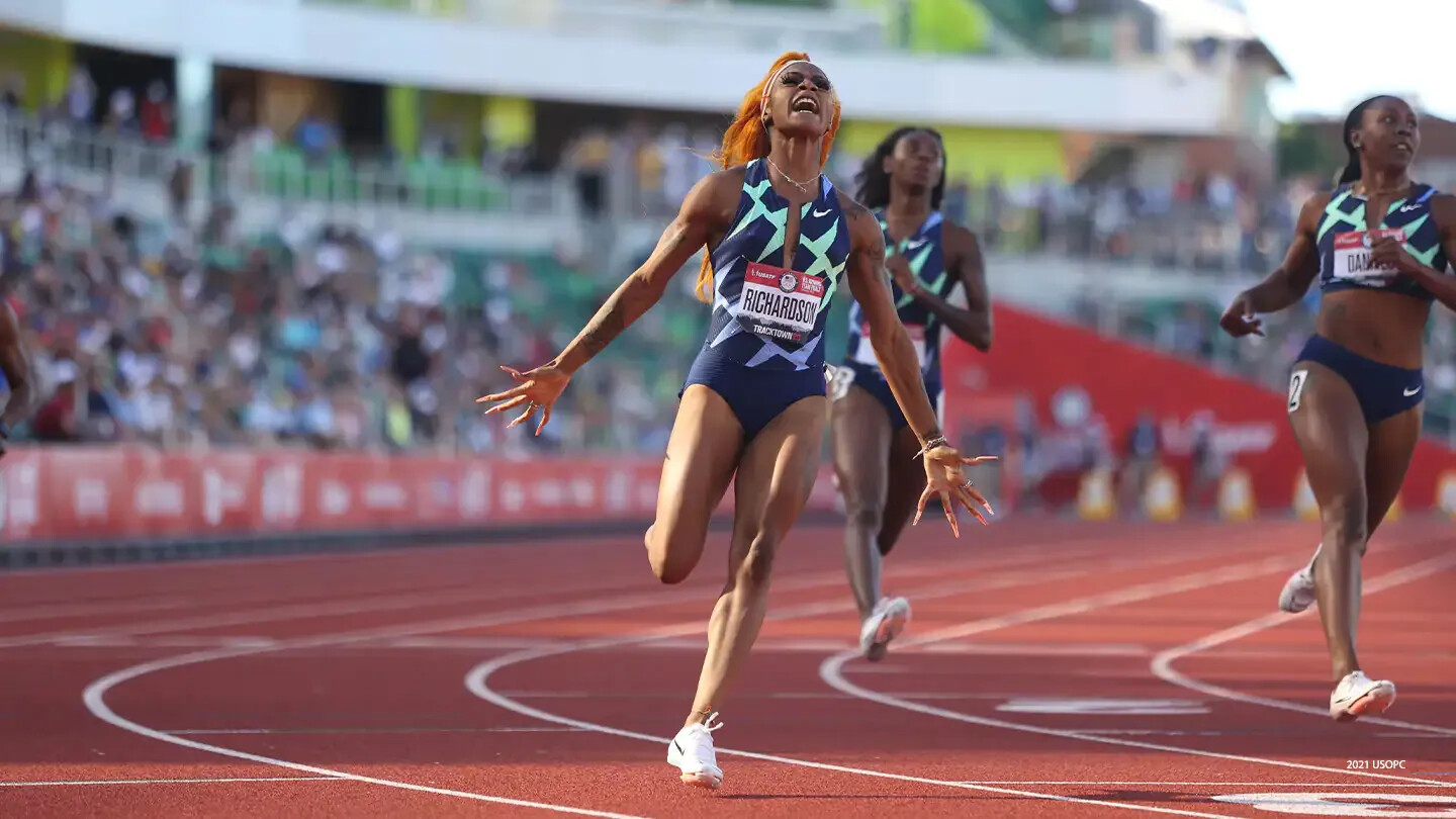 Sha’Carri Richardson, the world champion won in her first women’s 100m of the Olympic year in a time of 10.83sec ahead of St Lucia’s Julien Alfred (10.93) and Dina Asher-Smith, whose time of 10.98 was a season best for the Briton.