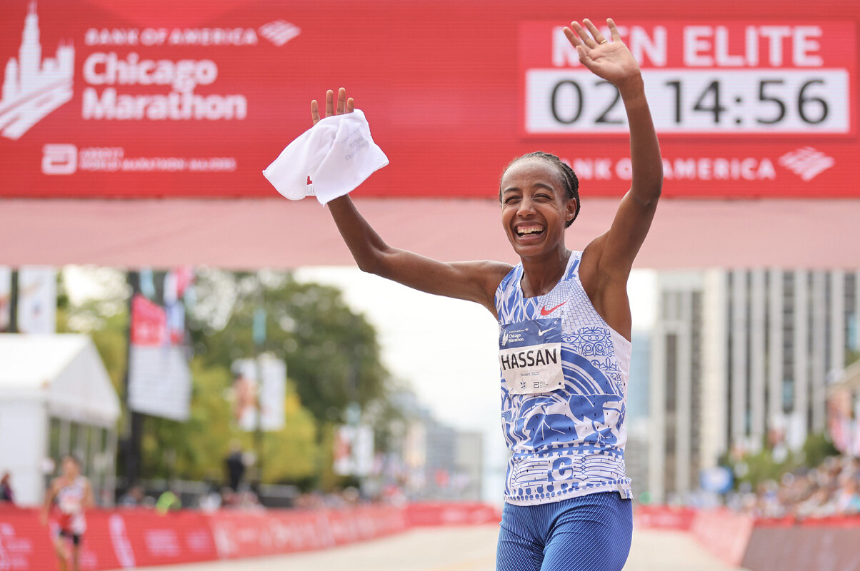She held on to cross the finish line in 2:13:44, a European record by almost two minutes. With her latest performance, the versatile Hassan is now the second-fastest woman in history for the track mile, 10,000m and marathon.