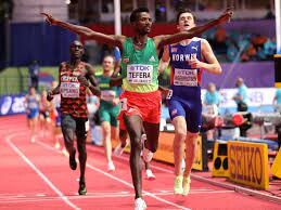 But tracking him all the way, keeping his powder dry, was Tefera, the slightly more measured pace compared to the race in Lievin allowing him to sit in his slipstream into the final bend. Tefera then moved wide off the turn and emptied the tank to edge past his rival up the home straight, retaining his world indoor title with a championship record of 3:32.77.