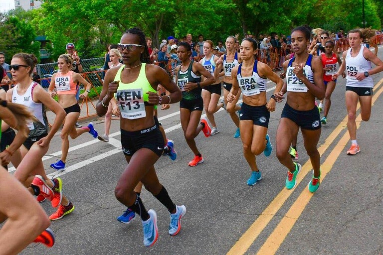 Perfectly paced by Kenya's Jeremiah Cheserek, the main group went through the opening 5km and 10km checkpoints in 15:29 and 31:08 respectively, slightly inside 1:05 finishing pace. The eight-woman lead pack included Klosterhalfen, Kenya's world 10,000m bronze medallist Margaret Chelimo Kipkemboi, Vicoty Chepngeno, Agnes Ngolo and Ethiopia’s Hawi Feysa and Tsigie Gebreselama.