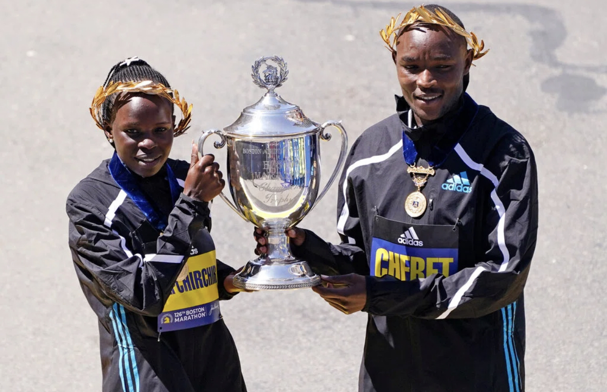 Cherono’s effort showed, as he had to be held on each side as he made the champion’s walk to the awards platform. Despite the pain, Cherono couldn’t help but smile and laugh as he clutched the winner’s trophy.
