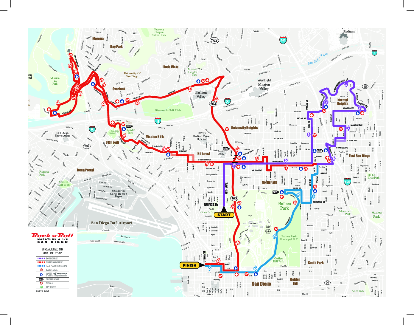 Run through historic neighborhoods including Balboa Park and Old Town. The Marathon, Half Marathon and Relay are packed with live entertainment on course that will keep you rockin’ all the way to the finish line.