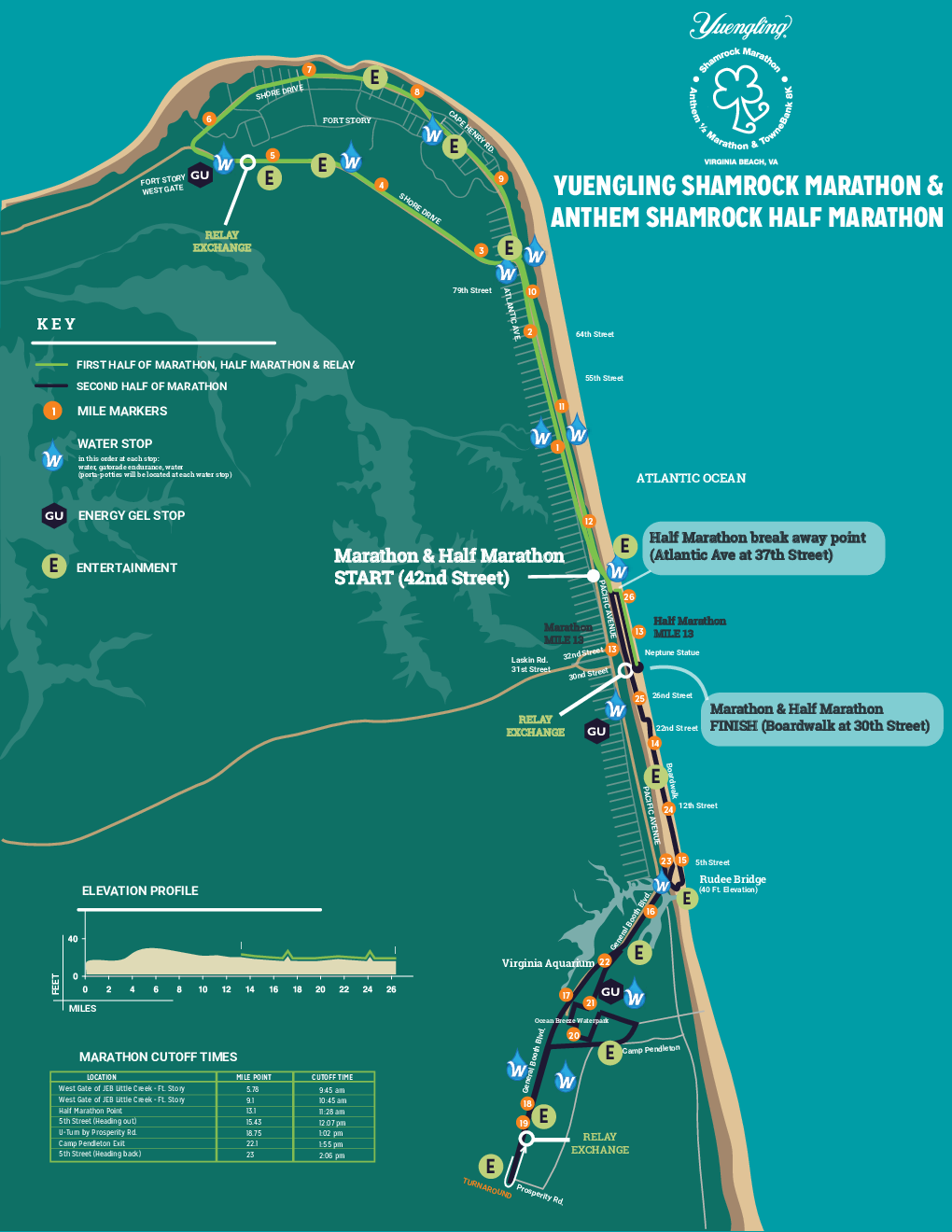 The Shamrock Marathon was born in 1973. It was the brainchild of Jerry Bocrie, who along with his wife Lori would serve as race director for 30 years. The inaugural marathon had 59 entrants and 38 finishers, and the weekend also featured 1-mile, 2-mile, and 6-mile races. In 1976, the 6-miler gave way to an 8k, which has remained a part of the weekend in one form or another ever since.